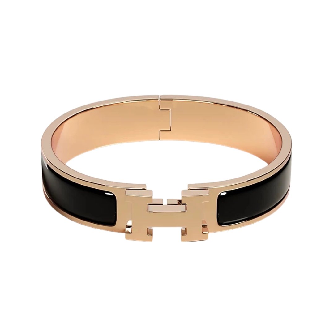 Narrow bracelet in enamel with rose gold-plated hardware.