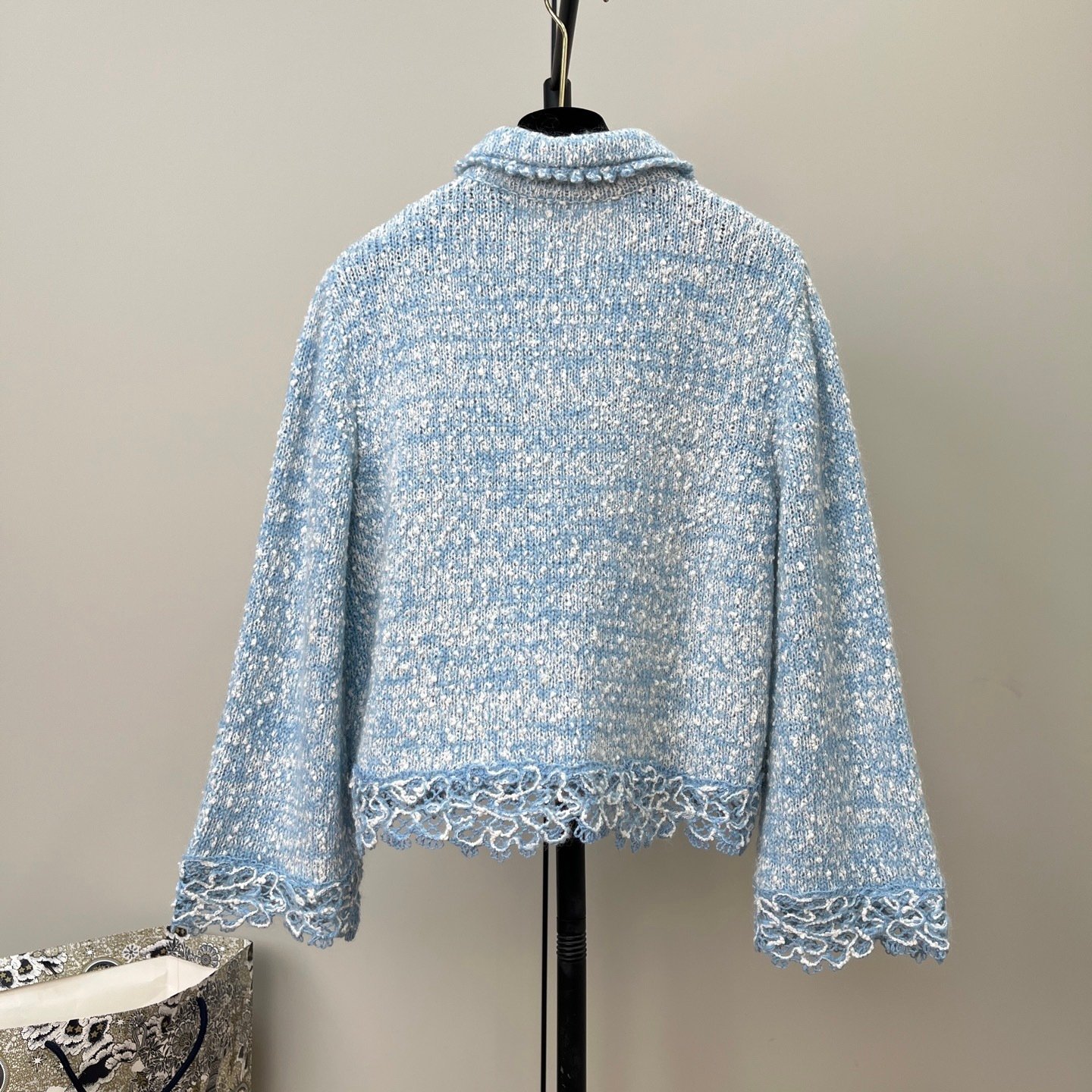 Hellblaue Häkeljacke