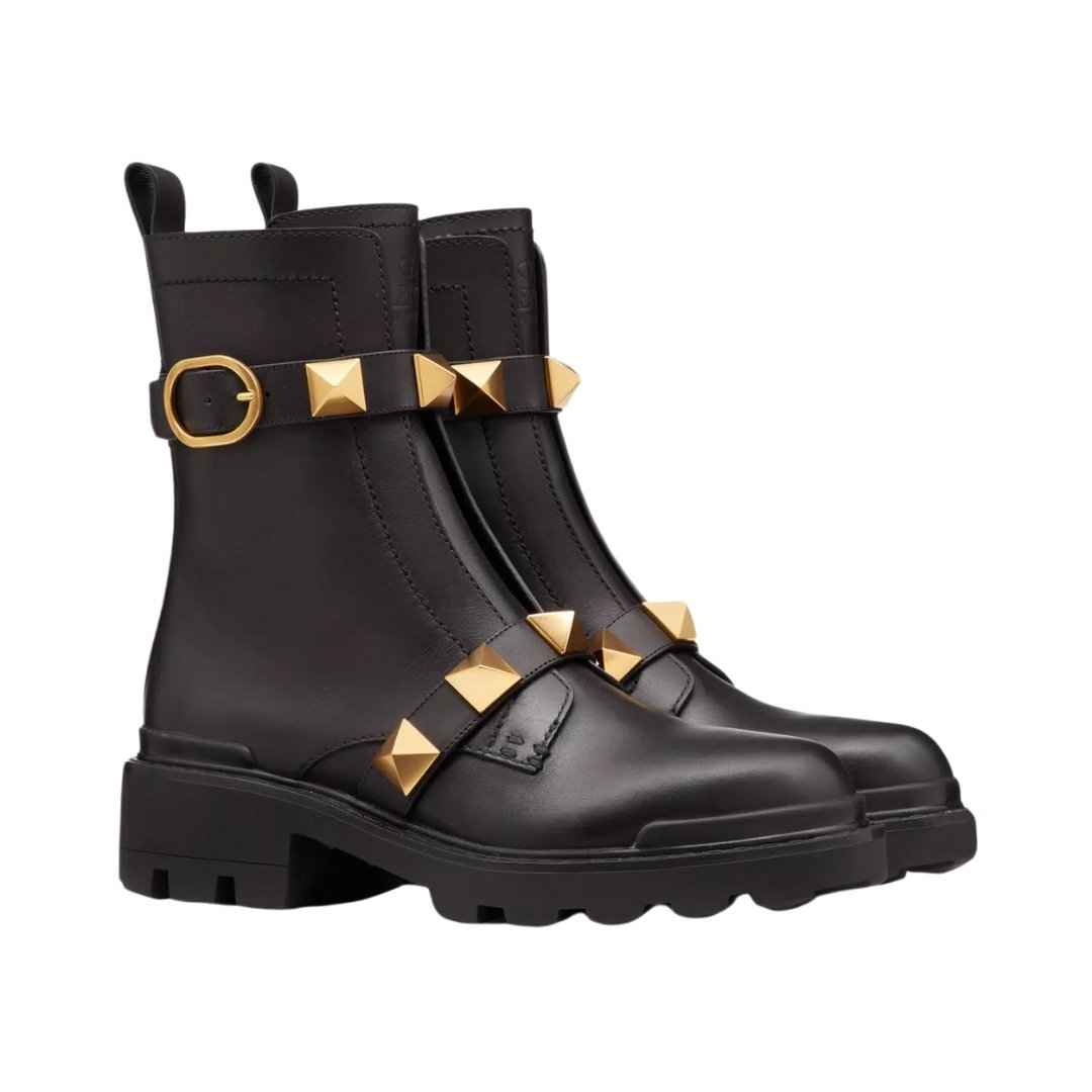 Kalbsleder Roman Stud Combat Schwarz 40cm