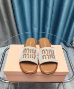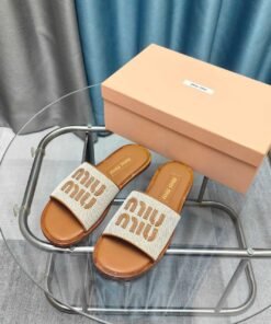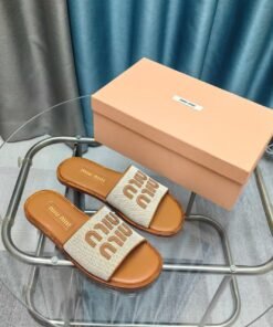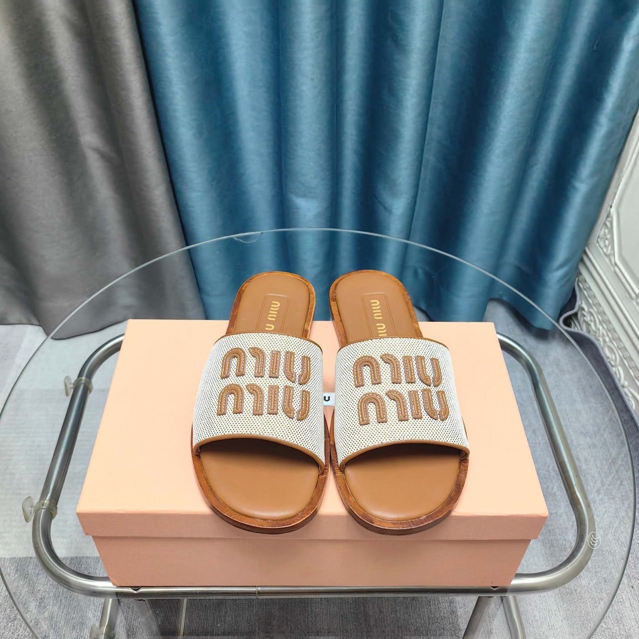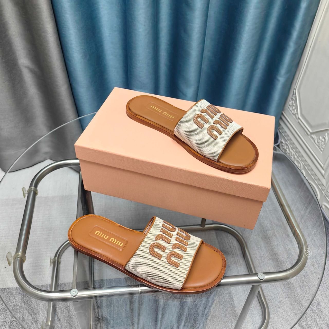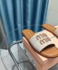 Leinen und Leder Slides Beige/Braun