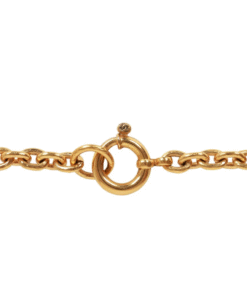 „This vintage Chanel necklace of 24K gold plated metal features a triple interlocking CC medallion having a florentine design on a long cable chain with a spring ring closure.